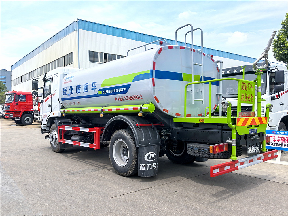 | 上裝配置:罐體采用國標Q235碳鋼,罐體厚度4mm,前后封頭5MM加厚型,罐體實際容積12立方(12噸),產品質量成熟可靠,設計先進合理,比同類灑水泵壓力大、吸程遠、使用壽命長,可泵進泵出。前沖、后灑、側噴,消防栓接口,帶后工作平臺及綠化高炮(可全方位旋轉,可連續(xù)調成直沖狀、大雨、小雨、毛毛雨),水位計,兩根等長輸水管,其余標配。 |