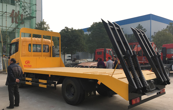 上裝配置:平板底板橫梁采用100*100*5mm方管,底板采用5mm或8mm花紋板,帶加密斜支撐,爬梯采用雙彈簧加強(qiáng)型設(shè)計(jì),采用三道筋+雙彈簧加固焊接,可選裝液壓爬梯或折疊加長型液壓爬梯,斜坡處帶后支腿,平板有效板長6.8米(含斜坡),板寬2.5米(可選裝帶左右加寬伸展),可以選擇貨箱帶欄板設(shè)計(jì),15噸及15噸以下噸位挖機(jī)首選車型!