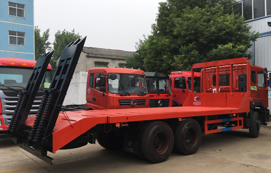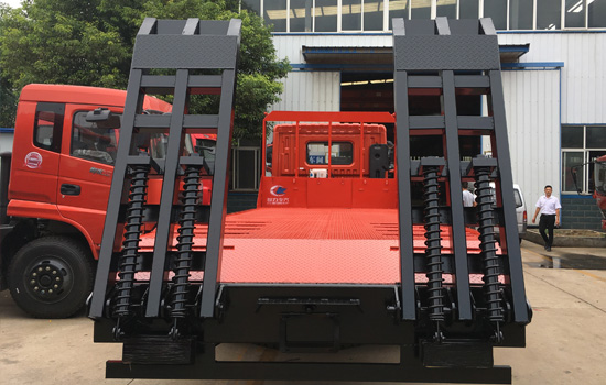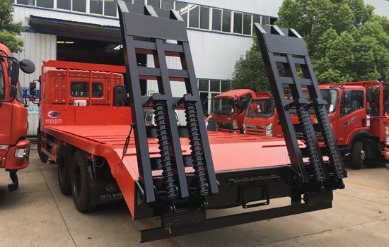 上裝配置:平板底板橫梁采用120*120*5mm方管,底板采用8mm、10mm或12mm花紋板,帶加密斜支撐,爬梯采用雙彈簧加強(qiáng)型設(shè)計(jì),采用三道筋+雙彈簧加固焊接,可選裝液壓爬梯或折疊加長(zhǎng)型液壓爬梯,斜坡處帶后支腿,平板有效板長(zhǎng)7.5米/8米兩種可選(均含斜坡),寬2.5米(可手動(dòng)伸展至3.2米),可以選擇貨箱帶欄板設(shè)計(jì),平板離地高度1.15米,28噸及以下噸位挖機(jī)首選車(chē)型!